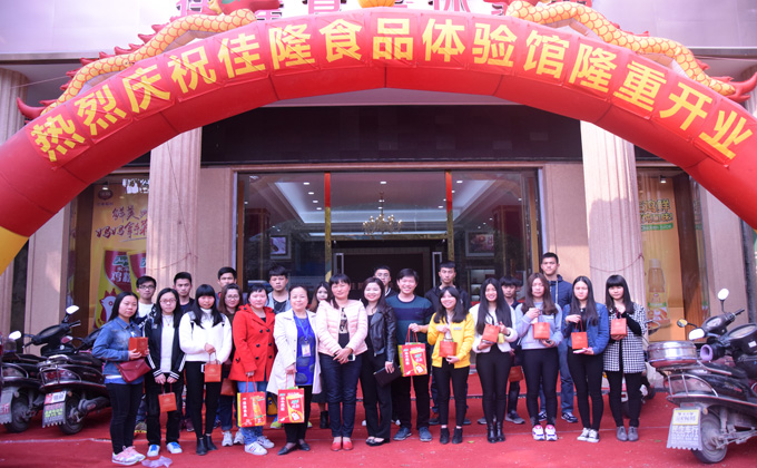 3月4日下午,经管系主任李晓艳率领管理教研室吴金莉、林盛伟老师和工商、市营、物流三个协会的社团干部一行21人来到佳隆股份有限公司销售体验馆,就佳隆“学生菜”市场推销实践项目合作交换意见,学生团队现场品尝体验。 多年以来,经管系与佳隆股份有限公司一直保持紧密合作。每个学期,佳隆股份有限公司都安排我系学生到英歌工业园区生产基地参观见习。 佳隆公司新近开发生产了“学生菜”,是针对粤东、粤中地区大、中、小学生的休闲开胃小菜,味道清淡可口,有瓶装、罐装和袋装三个品种,经济实惠。为让学生菜占领普宁中小学市场,佳隆项目经理陈总、“学生菜”销售经理王总有意向让我系学生进行销售,经管系抓住这个难得的实践机会,承接潮汕学院周边中、小学“学生菜”推销项目。系李主任为该项目争取销售政策,组织学生体验,召集专题会议,部署项目工作。组织工商、市营、物流三个协会学生开展营销策划、进校推销、业绩考核、奖励先进的竞赛活动,三个协会的专业指导老师全程跟踪指导,为期一个月。 佳隆“学生菜”市场推销实践项目是一次真正意义上的专业技能实战,学生在实战中培养和锻炼团队组织、协调和管理能力,市场预测、开发、促销等能力。同时,为校企深度合作奠定更加牢固的基础。 公司领导、指导老师与销售团队合影