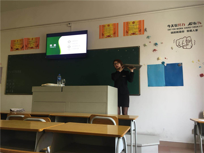 2018年3月16日,康莱酒店人力资源部总经理孙总到我校博学楼X406为我院16旅管班授课。 根据我院与康莱酒店建立的校企合作方案,由有着将近二十年从业经验的康莱酒店人力资源部孙总担任我院16旅管班《餐饮服务与管理》课程的老师,第一周我院16旅管班已完成在康莱酒店的实践授课,从本周开始一直到第9周,康莱酒店孙总将在每周五早上到我校为我院16旅管班授课。在此次的课程上,孙总先是为同学们复习上周五所学的知识点,随后教同学们一起学习餐饮服务中的摆盘知识,例如认识餐具、餐具的使用、摆盘角度等。 在课程最后,孙总让同学们轮流摆盘,并一一细心指导并纠正同学们的错误操作。相信同学们将在此次校企合作实践教学中收益颇丰,实现康莱酒店和我校的互惠双赢。 撰文:陈贵冰