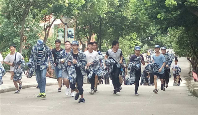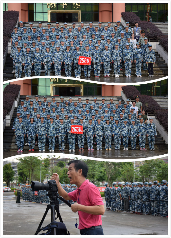 9月5日 8:00 新生在图书馆前准时集合 一大波未换军服的小鲜肉和小仙女们,大家看着都白白净净的 领完军服 用力跑起 军训第一天,经管学院27、28方队人力班与食检班的宝宝就给罚深蹲,唉,师姐真心地心疼你们啊! 9月6日晚 韩书记为新生进行理想信念教育讲话 学院概况 |理想信念 党委书记韩淑芳为大一新生讲解学院概况、而后进行理想信念教育,帮助新生明确往后的学习方向、坚定理想信念。 9月7日上午 新生军训动员大会 2017年9月7日上午,潮汕学院2017级新生军训动员大会在学校操场举行,出席此次动员大会的领导有:新黄埔青少年军校副校长金涛、党委书记韩淑芳、副院长魏跃进、董事长助理齐广武、院长助理李育华、以及各二级学院院长等。本次大会由学生处处长王克明主持。 9月9日下午 各新生方队合影留念 摄影师为了逗大家笑也是蛮拼的 伴着落日的余晖以及毛毛细雨而训练,闷热而又清凉,那酸爽~~!! 9月10日 天气晴好 今宜军训 最后来个实力摆拍! 右一的小鲜肉好帅的样子哦,嘻嘻 撰文:陈贵冰 摄影:陈贵冰