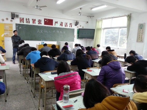 ![]() 刘教林助理提出要求 ![]() 周伟芳科长发言 ![]() 诚实做人,诚信考试 ![]() 认真答题的考生 ![]() 中职部考场秩序井然 |