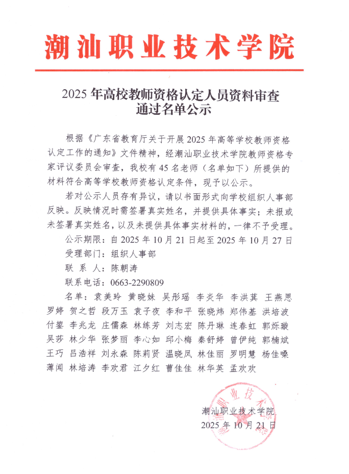 2025年高校教师资格认定人员资料审查通过名单公示