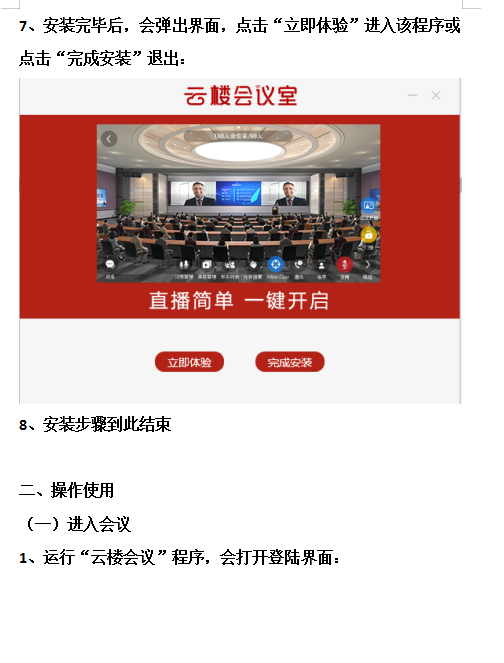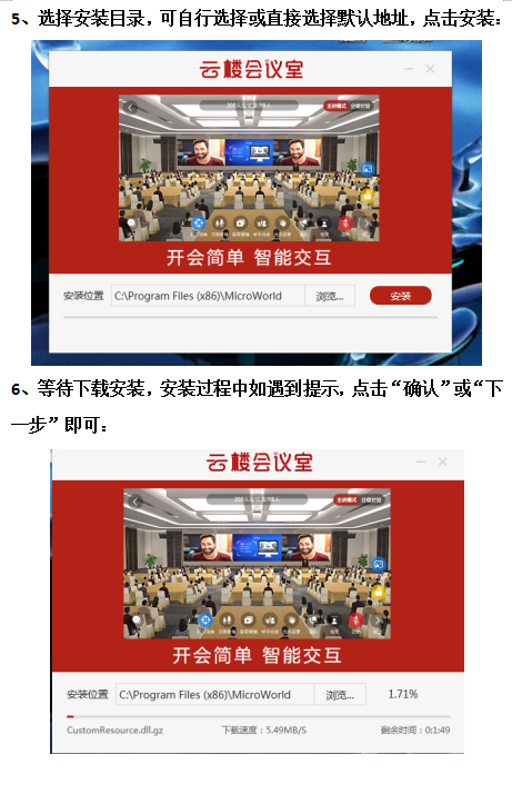 云楼视频会议电脑端下载地址: http://ceb.cspi.edu.cn/uploads/soft/pcyl.exe 云楼视频会议手机端下载地址: http://ceb.cspi.edu.cn/uploads/soft/yl.apk 云楼电脑端和手机安装包下载地址: http://ceb.cspi.edu.cn/uploads/soft/yl.rar