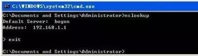 (1)在本地机上使用nslookup命令查看本机的IP及域名服务器地址。