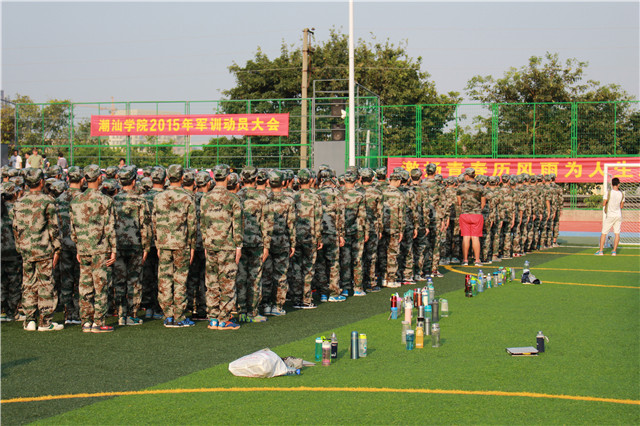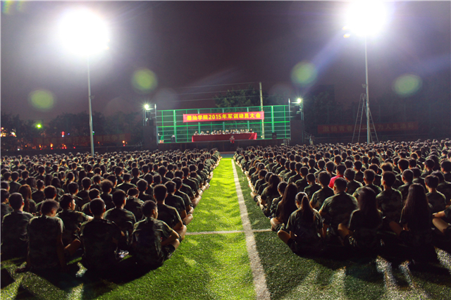 今天是2015年9月14日星期日,15级新生的军训已经进行了2天。凉爽多云的天气为同学们的训练提供了不少便利,绿茵茵的青草和橄榄绿的迷彩军装相互辉映,让同学们显得活力十足。 军训场上,教官们严格要求新生整理军容、端正军姿,不时亲自示范,手把手纠正基本动作,同学们在英姿飒爽的教官的带领下认真训练,丝毫没有偷懒。而下午的军训动员大会,学院领导深切的讲话和教官们整齐划一的示范,更是激起新生的激情。晚上,团委副书记钟逍彬简单向新生们介绍四大板块的职责;紧接着,由各版块主席为新生介绍各自版块的具体情况;最后,由学生处处长王克明讲话,希望新生规划大学的学习生活,为自己今后进入社会奠定基础。 古人有云,“古之立大事者,不惟有超世之才,亦必有坚忍不拔之志”。在这里,同学们洒下了辛勤的汗水,收获的将是铁一般的体魄,钢一般的意志,雷厉风行的作风,坚定不移的毅力。军训是同学们整个大学生活乃至一生中无比宝贵的财富,虽然辛苦,但“宝剑锋从磨砺出,梅花香自苦寒来”,同学们只要坚持,胜利就会属于你们! (摄影:苏晓存) (责任编辑:吴晓祈)