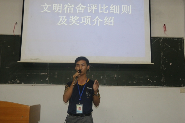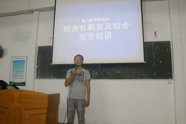 董力铭老师首先发言,他以宿管部指导老师的身份对15级宿舍长工作职责进行了详细的说明,突出宿舍长工作的重要性,要求同学们明确自身职责,共同营造良好的宿舍环境,敢于承担责任。另外,董老师还着重强调了宿舍安全问题,提醒各宿舍长不可忽视任何安全隐患,希望同学们能够平安地生活、快乐地学习。 接着,吴晓祈老师对董老师的发言进行了补充。吴老师强调,各宿舍长只有明确自身职责对于自己背后的意义所在才能更好地履行职责,从而无愧于这一职务,在管理中锻炼自己的协调能力、组织能力、与人交往的能力。希望各宿舍长摆正心态,积极利用这一职务所带来的平台,转变心态,实现从“要我做”到“我要做”的境界提升。 最后,宿管部公布了文明宿舍评比的办法,希望各宿舍长尽职尽责,努力争取宿舍荣誉,共同创造宿舍文明氛围。 董力铭老师发言 吴晓祈老师发言 15级全体宿舍长 摄影:吴晓祈