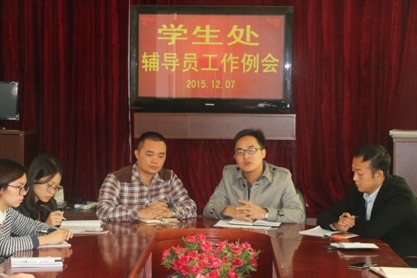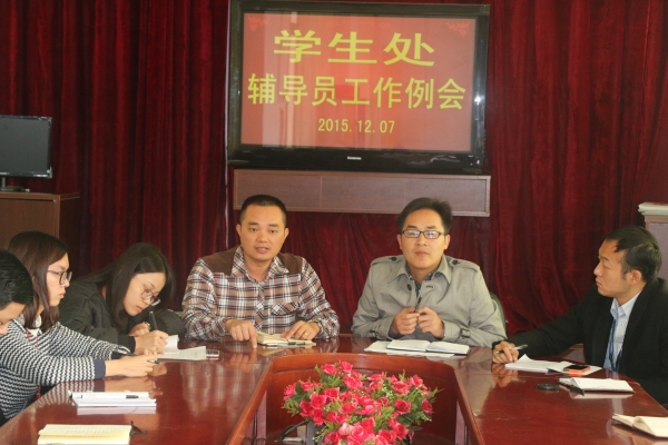 王克明处长首先发言,他布置了期末的主要工作,包括期末考试、寄存电脑、学生留校、离校安全教育等,希望辅导员不要松懈,继续紧抓学生管理工作,力求圆满完成本学期工作任务。另外,王处长还要求辅导员继续关注学生的思想动态,尽可能排除学生出现心理问题的几率。辅导员应深入学生宿舍,尽量全面地了解学生生活中各方面的困难,及时解决。 处长助理钟逍彬随后讲话,主要强调各辅导员跟进学生欠费情况,及时反馈学费收缴进度,避免出现大部分学生拖欠学费的情况。另外,钟助理还通知了海外潮人奖学金颁奖仪式的举行时间,请各系组织好获奖学生按时参加。 本次会议明确了各系、各辅导员的期末工作,有利于圆满完成本学期最后阶段的工作。 王处长讲话 钟助理讲话