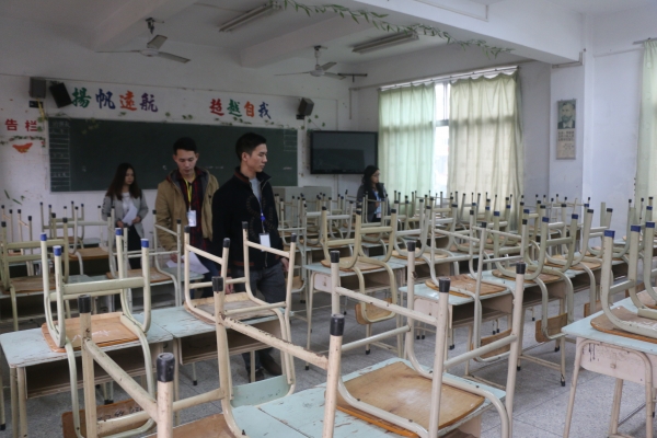 从中午开始,各班在辅导员的组织动员下,就开始了各班的卫生打扫,从桌椅排放、废纸清理到扫地拖地等,全方位地对教室进行清洁。