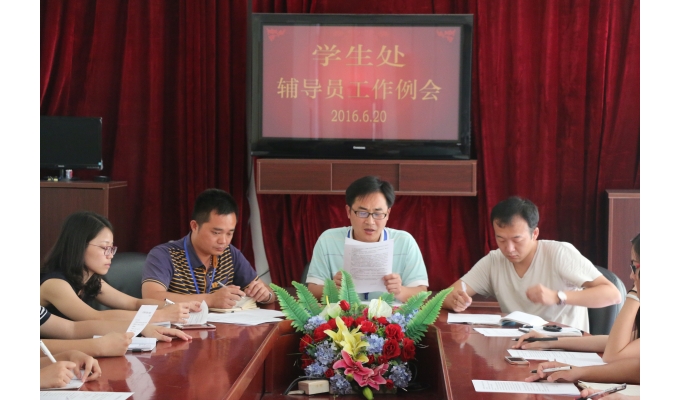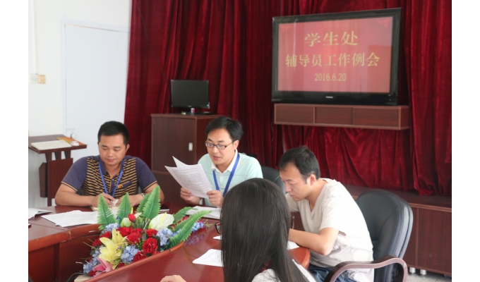 王处长首先强调,临近期末,应加强管理工作,防止放假前夕的学风不振现象,辅导员应继续严抓考勤,促使学生完成本学期学习任务。期末考试结束后,各班应做好教室卫生工作,学生处将于7月9日组织学生进行检查工作。 王处长指出,16级新生转眼将至,为顺利开展新学期学生工作,请辅导员推荐优秀学生竞选16级辅导员助理,并上报14、15级优秀辅导员助理,届时将颁发聘书。 钟助理说到,本周三下午将举行奖学金颁奖仪式,请辅导员组织各班学生参加并提前到场;落实学生意外保险购买工作,切实保障学生权益;另外,辅导员应提醒缓交学费的学生如期缴费,以免影响后期的学习和工作。钟助理还强调,各系团总支学生会应于本周内完成换届工作,并将新任干部名单上报至院团委。 会上,各位辅导员针对具体工作展开研讨,并取得一致决议,协调开展期末工作。 摄影:吴晓祈