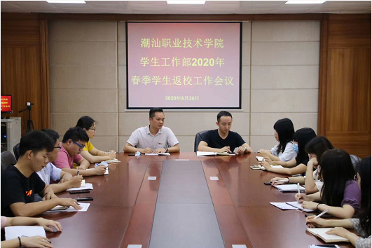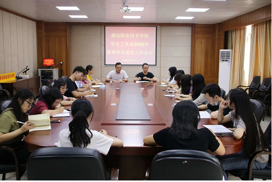 5月25日上午,学生工作部在二楼会议室组织召开2020年春季学生返校工作会议。会上,钟逍彬部长就做好学生安全返校各项工作进行了全面的部署,他要求全体老师要提高思想觉悟,明确责任分工,抓实抓细学生返校流程,全力以赴做好学生教育管理和校园防疫管控工作,切实在这场学生返校特殊大考中显担当、增本领、看作为。