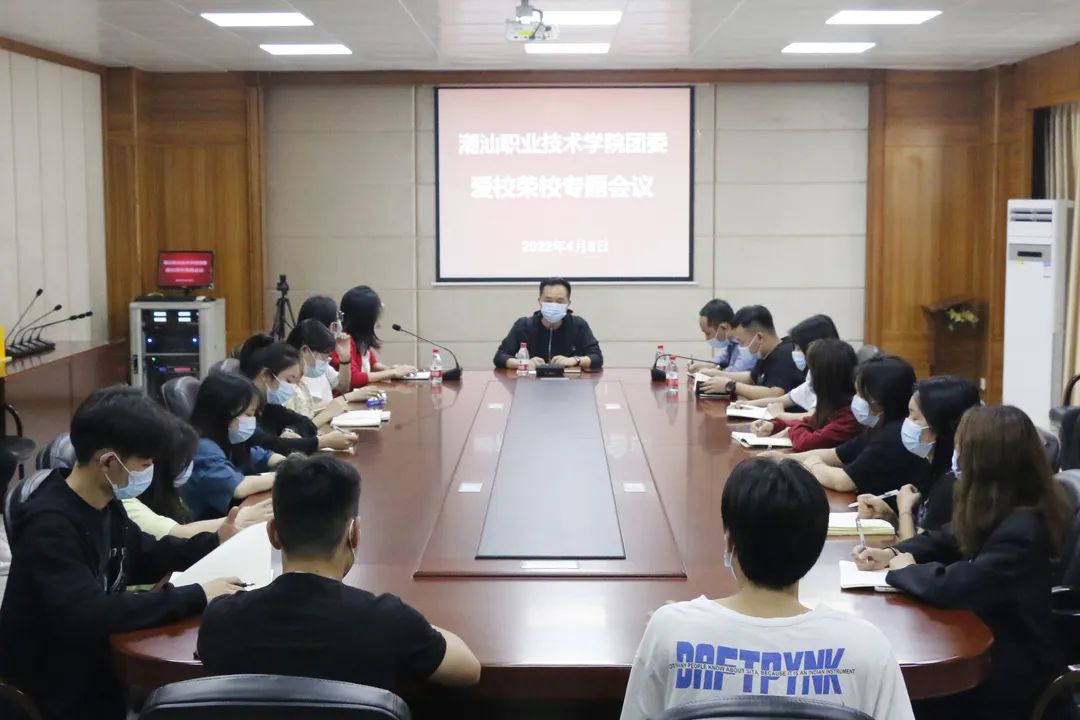 2021年4月8日下午,校团委在二楼会议室组织召开各学生组织“爱校荣校”专题会议。学工部部长、团委书记钟逍彬以及各学生组织主席团参加本次会议。