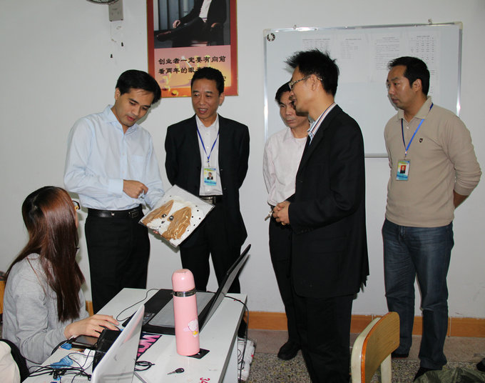 4月27日上午,普宁市副市长冯亮同志在魏跃进副院长、学院董事会张卫道董事陪同下,参观了我院淘宝创业园。