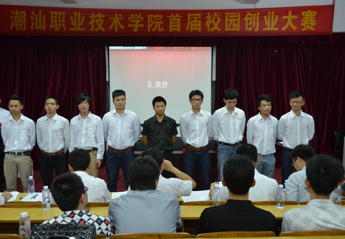 5月23日晚上,由招生就业处承办的潮汕技术学院“助你创业、技行天下”首届校园创业大赛暨“助你创业,赢在广州”第二届大学生创业大赛(潮汕学院赛区)复赛在科技楼101成功举行。党委张业宏副书记、党政办公室张纪彦主任、学院教学督导刘教林、图书馆副馆长赖宏慈、学生处王克明处长助理和招生就业处吴智勤处长助理6人担任大赛的评委。魏跃进副院长出席大赛,并做了讲话。