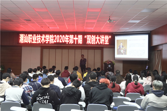 12月22日下午,潮汕职业技术学院2020第十期“双创大讲堂”在学院第二报告厅开讲。