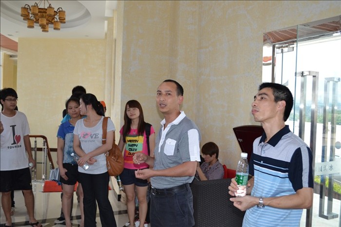 在南方梅园周经理的带领下,师生们依次参观了南方梅园生态村的在建酒店及餐饮娱乐区(梅香食府、水上乐园、寒妈水库)等设施。周经理现场为师生做了详细的讲解,介绍了生态村的总体规划及目前的建设运营情况,同时也表达了对我院旅游管理专业学生的欣赏和欢迎。本次教学活动不仅增进学生对酒店、景区经营管理的认识,也锻炼了学生的导游服务能力,进一步提升了学生的学习积极性。
