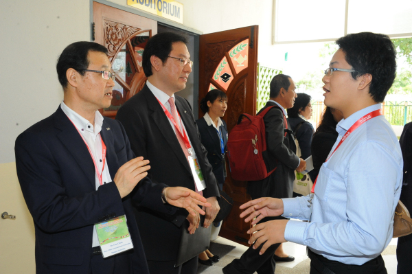 ![]() 10月22号早上,基督教大学校长—古几拉,热烈欢迎潮汕学院名誉院长庄明英、院长纪少游等一行人。 ![]() 第13届“亚洲大学校长论坛”开幕会上,主办方泰国基督教大学致辞并向论坛发起单位——潮汕职业技术学院表示感谢和致敬。