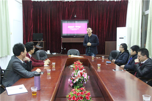 | 2016年2月27日,闪耀绘创始人贺宣智一行来我院考察交流,我院院长助理兼党政办主任李育华、跨境电商实战学院院长陈江生、跨境电商实战学院院长助理叶炳森等领导亲临接待。 会上,院长助理李育华介绍潮汕学院创办历程和办学成果,随后跨境电商实战学院院长陈江生向闪耀绘创始人贺宣智一行介绍潮汕学院跨境电商实战学院的概况、 创办历程、教育理念和办学特色等。 闪耀绘创始人贺宣智高度评价我院的创业精神和创业理念,把李克强总理“大众创业、万众创新”精神落到实处。