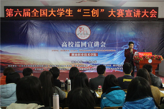 | 3月16日,全国大学生“三创”大赛高校巡回宣讲会“潮汕学院站”在学院科技楼隆重举行。