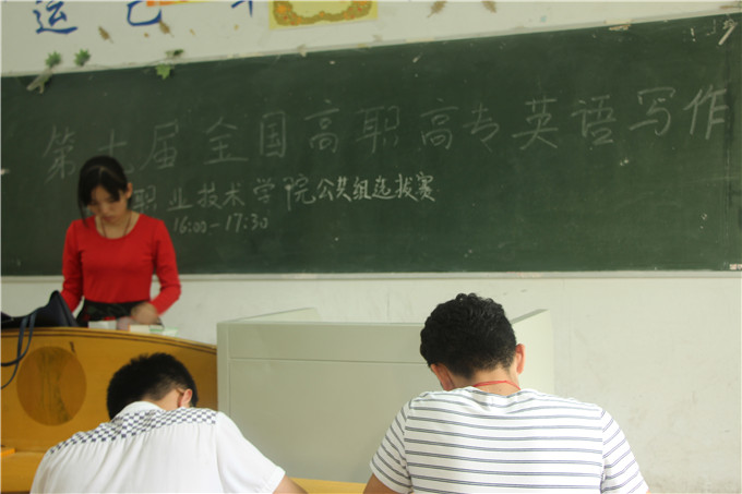 为促进大学生对英语的学习氛围与交流,于4月27日下午商务贸易系在综合楼如期举行第七届全国高职高专现场英语写作大赛,本次大赛得到学院领导的大力支持,大赛邀请到学院教务处副处长王燕娜老师,督导室督导张桂春老师做为本次大赛的特邀嘉宾,另外监考本次大赛的老师有英语教研室主任陈璧玲老师以及英语教研室其他几位老师。