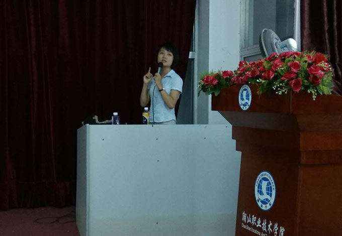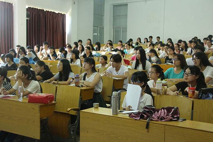 三、各项目答题技巧介绍(听力、写作、阅读、翻译) ![]() 商务贸易系吴丹妮老师为同学们进行英语四级讲座
