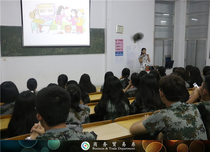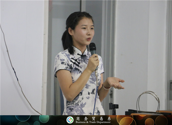 王洁梅老师首先代表商务贸易系、跨境电商实战学院全体师生对2016级新生的到来表示热烈的欢迎,并对商务贸易系的发展、专业设置、师资力量以教学环境等向同学们做了一一的介绍。