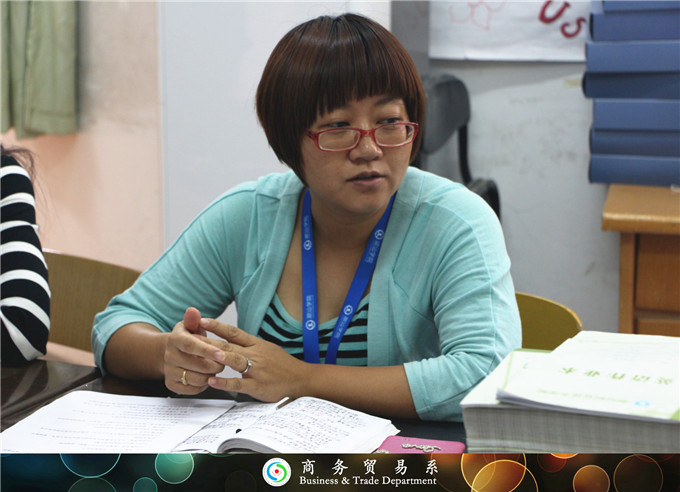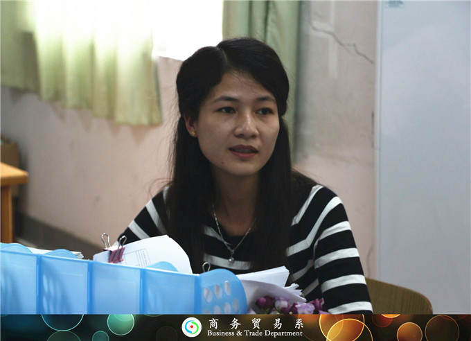 商务贸易系副主任陈壁玲、跨境电商实战学院副院长郑重、主任助理叶炳森、英语教研室主任庄映红、教务员王洁梅及我系各老师参加会议。