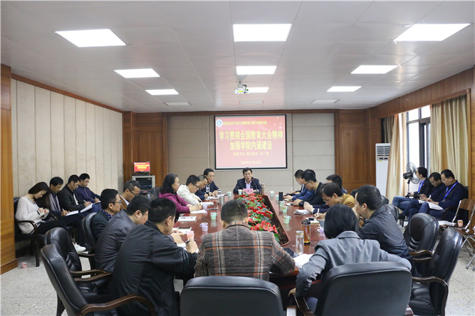 3月1日上午, 2019年教育系统全面从严治党工作视频会议在京召开。随后,我省教育厅继续召开2019年全省教育系统全面从严治党工作视频会议。我院党委书记、执行院长齐广武、副院长魏跃进等领导及各二级学院、部门领导和各基层党组织干部在综合楼会议室集体收看会议。...