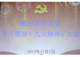 为进一步深化党的十九大宣传报道工作,学习贯彻十九大精神。 11月1日下午,潮汕学院党委在会议室举行学习贯彻十九大精神扩大会议,传达学习党的十九大精神并对深入学习宣传十九大精神进行研讨。学院常务副院长单振东、副院长魏跃进、董事长助理齐广武、 党委委员、纪委...