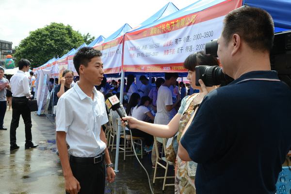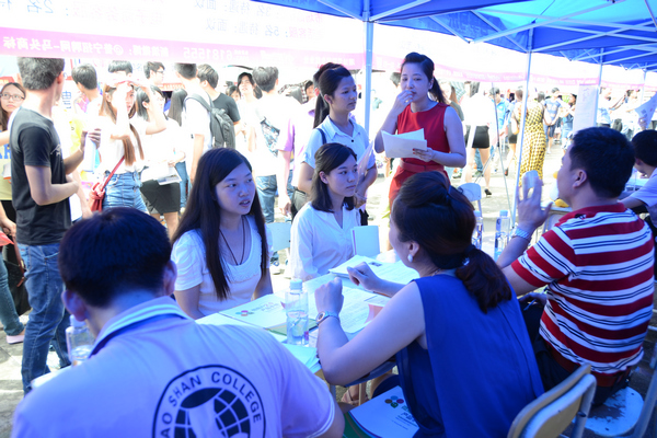 上午九点,我院各级领导、企业代表、普宁市人社局领导共同参加了开幕式。副院长魏跃进在开幕仪式上致辞;魏副院长首先感谢当地人社局对学院招聘会的重视,感谢远道而来的128家企业对我院的鼎力支持,同时希望应聘学子珍惜招聘会平台,自信自强,认真履行好人生的第一份合同。普宁市人力资源和社会保障局局长江少涛发表讲话,指出大学生就业工作关乎民生大计,揭阳、普宁两级人社局对此次招聘会非常重视,对潮汕学院致力于培养“创新创业型人才、以创业带动就业”的人才培养模式表示肯定。并用“肩负重托举办招聘盛会,凝心聚力开启就业大门”与师生共勉。 ●政府为招聘会保驾护航 在今天的招聘会上,普宁市人力资源和社会保障局局长江少涛等领导亲临现场指导,他们分别与学院、企业领导、毕业生交流,表示竭尽全力为人才供需双方提供政策保障,为校园招聘会保驾护航。 ●参展企业数量多、实力强 据学院就业处处长谢耿介绍,今年来我院现场招聘的128家企业,共为毕业生提供200个工种、2800多个岗位。期中不乏“广东铁青”、“四川九州”等国企,还有“佛山海尔”、“安诺药业”、“东风日产”等上市公司。这些实力雄厚的企业为我院毕业生提供了更为宽阔的就业平台。 ●毕业生心态更理性、更平和 在今天的招聘摊位前,企业提供的基层岗位居多。针对这一现状,记者采访2012级报关班的许振坤同学,他说:“作为一名即将出去实习的大学生,更应该抱着一种学习的心态去对待工作,用新人的身份去接纳社会给予自己的一切打磨,从基层做起,踏踏实实的干,总会找到适合自己的发展空间和定位”。 ![]() 招聘会现场