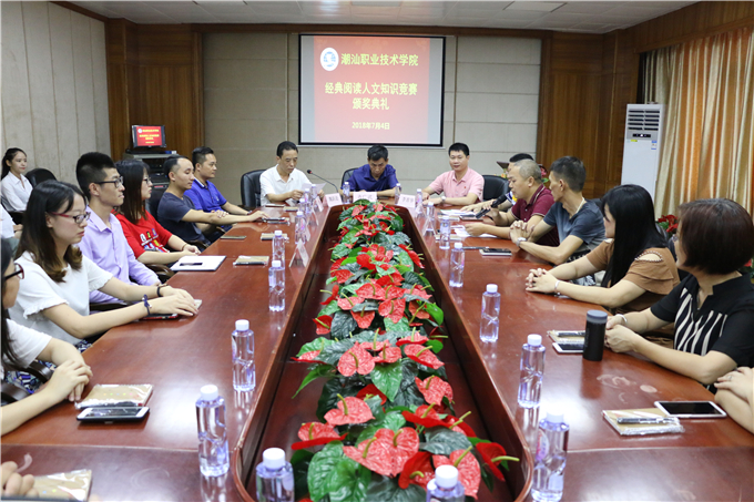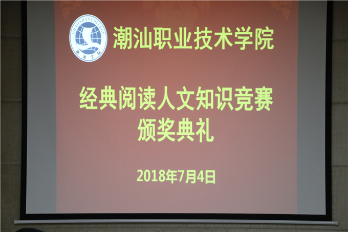2018年7月3日下午,我院在二楼会议室隆重举办了“经典阅读人文知识竞赛颁奖仪式”。学院党委书记、执行院长齐广武、副院长魏跃进、党委副书记李育华、党委委员、学生工作部部长钟逍彬、团委副书记陈楠、网络与图书服务中心主任廖绪州、通识教育部教师陈凯萍、思政部教师黄其峰出席本次大会,大会由网络与图书服务中心副主任赖宏慈主持。 首先,由网络与图书服务中心主任廖绪州对本次“经典阅读人文知识竞赛”作总结发言。 接下来,主持人宣读荣获本次经典阅读人文知识竞赛的获奖同学名单,并请各位学院领导上台为获奖选手进行颁奖。作为本次校内赛区的第一名,17级江子文同学发表了获奖感言。 最后,学院副院长魏跃进在大会上发表了重要讲话:代表学院对获奖选手表示祝贺,并希望借助“2018年全省高校图书馆经典阅读人文知识竞赛”潮汕学院赛区总结表彰的机会,全面推进校园文化建设,进一步净化校园学习风气,营造浓厚的读书氛围,激发大家的读书兴趣,逐步养成“爱读书、多读书、读好书”的读书习惯。针对希望提出以下两点建议: 一、网络与图书服务中心能够积极与学生工作部、通识教育部的领导和老师及社团联合会学生们继续深入合作,推广电子图书学习平台,推广互联网学习新模式。激发参与人文活动热情,提升人文素养和综合素质。 二、以本次竞赛为契机,愿日后有更多的读书主题活动,同学们能坚持读书,认真读书,持续在潮汕职业技术学院掀起一股读书热潮,营造一种浓郁的读书风气,打造一种主动学习、自由发展的校园人文氛围。 中华文化源远流长,国学经典是中华民族几千年沉淀下来的智慧,是中华民族的血脉,古典名句是传承中华民族优秀传统文化的经典载体。本次“经典阅读人文知识竞赛”营造了我院浓厚的读书氛围,推进了我院的校园文化建设,使同学们对中国优秀传统文化有了更深的感受与了解。
