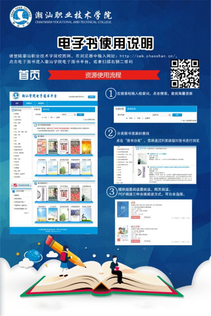 在这个春暖花开、生机盎然的日子里,在世界读书日来临之际,在我院第二十届校园文化艺术节开幕之际,为打造书香校园,进一步在我校营造浓郁的读书氛围,网络与图书服务中心特此举办一场网络书香、数字阅读的活动。 今晚,网络与图书服务中心在图书馆大厅举办潮汕学院电子图书系统培训会,为我们接下来一系列阅读活动的开展铺开了一个新天地。出席本次培训会议的有北京超星数图信息技术有限公司高级讲师龙玉、网络与图书服务中心主任廖绪州、18级全体辅导员等,会议由网络与图书服务中心副主任赖宏慈主持。 会议首先由网络与图书服务中心主任廖绪州发言,首先说明了本次活动的目的在于为了使我馆的电子图书资源得到充分利用,帮助读者了解数字图书馆的功能、性质和作用,更充分、更自主、更便利地使用丰富的数字资源,培养大众数字阅读习惯,享受数字阅读的乐趣,提高读者的信息化素养,建立和谐的馆读关系;最后预祝本次活动取得圆满成功。 接着,由北京超星数图信息技术有限公司高级讲师龙玉为大家作专题培训,详细讲授超星电子图书的使用方法与技巧以及读秀学术搜索的使用方法与技巧,并与大家进行现场互动,让有疑问的同学可以现场提问,解决问题。在龙玉讲师的热情讲解下,现场的氛围很热烈,学生踊跃发言互动。 ![]() ![]() ![]() ![]() ![]() ![]()