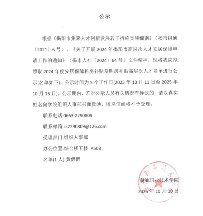 拟领取2024年度安居保障租房补贴及购房补贴高层次人才名单进行公示