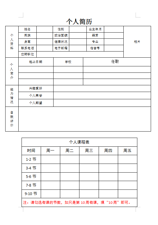 勤工俭学个人简历下载
