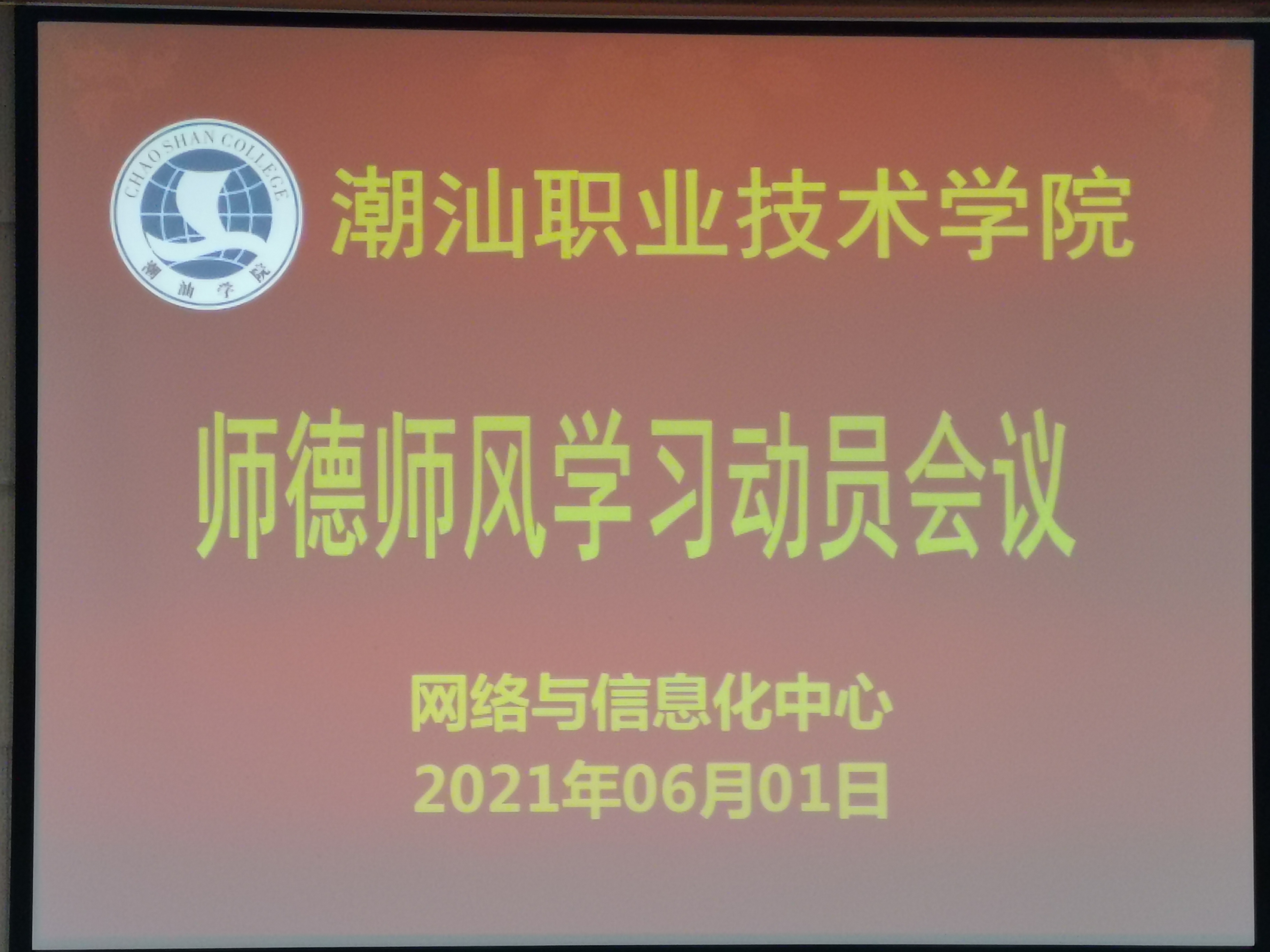 为全面贯彻落实党的教育方针,进一步推进我校教师师德师风建设进程,提高教师队伍整体素质,创建优良校风、教风和学风、提升教学质量和水平,培养各造就高素质创新型人才,根据《教育部关于进一步加强改进师德建设的意见》(教师20051号)和《关于加强和改进师德师风建设实施方案(试行)》(粤潮院[2021]37)等文件精神,网络与信息化中心6月1日在学校二楼会议室召开“师德师风学习动员会议”会议由网络与信息化中心所有人员参加。