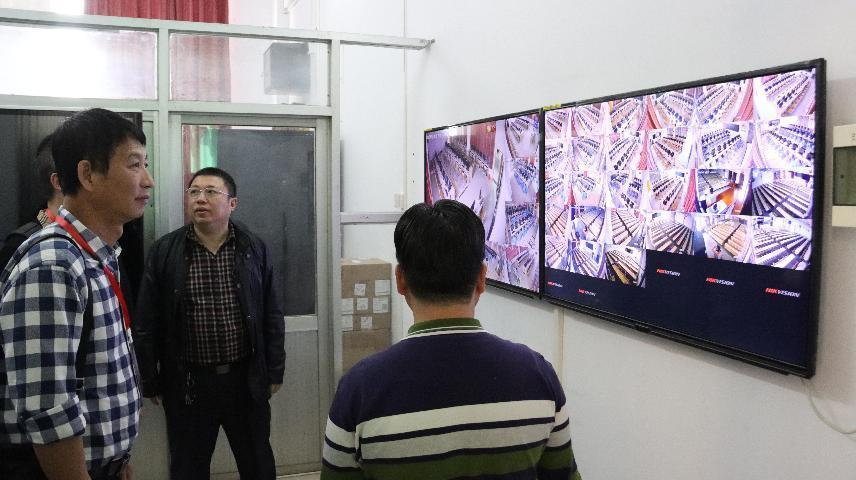图1.在网信中心主任的陪同下专家通过监控检查各个角落安全情况
