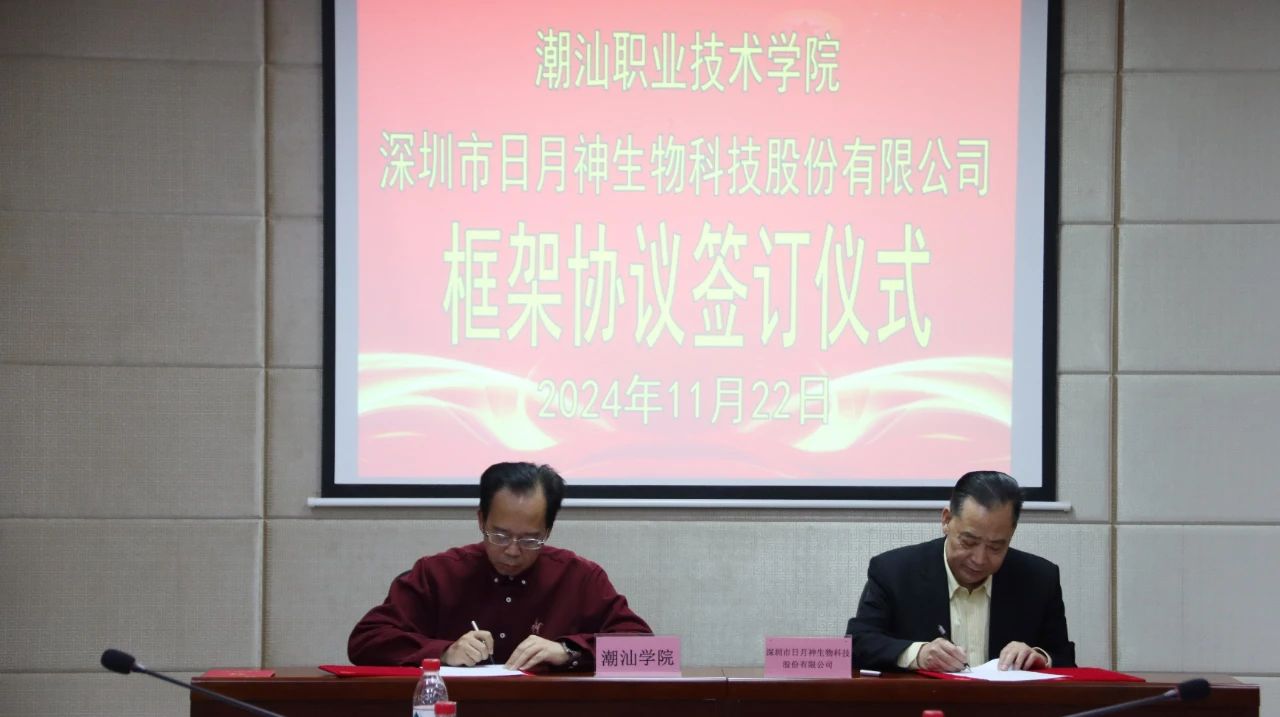 11月22日,潮汕职业技术学院(以下简称“潮汕学院”)与深圳市日月神生物科技股份有限公司签署大健康合作协议。