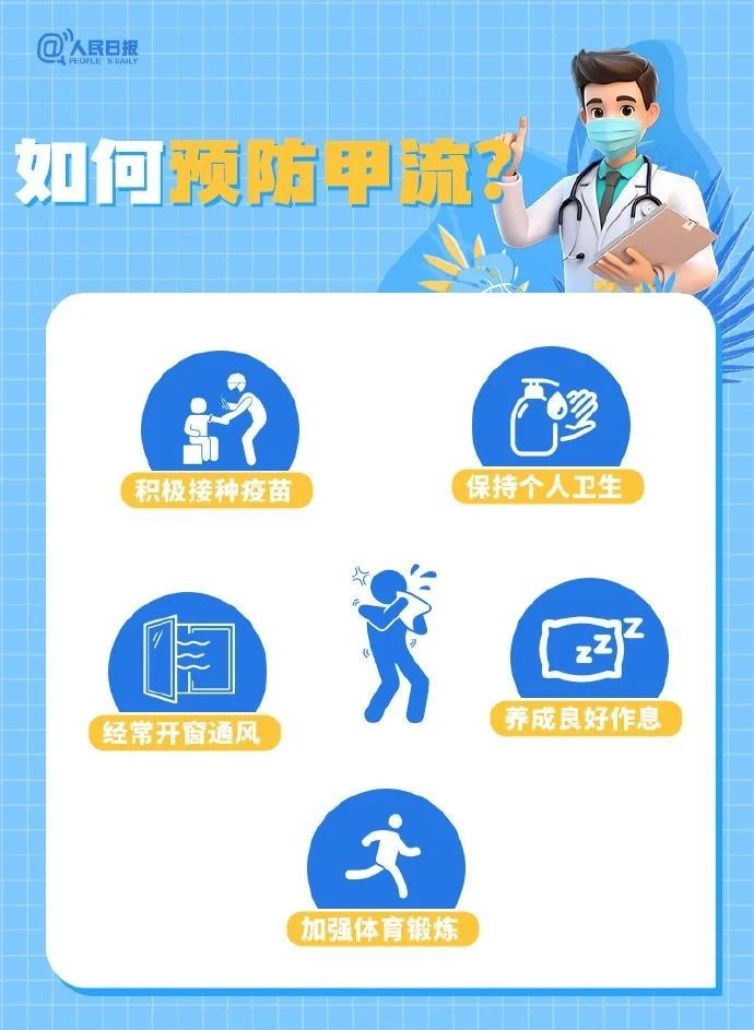 因此,同学们可以通过接种流感疫苗、勤洗手、戴口罩来有效预防,如果有发热、咳嗽或咽痛等流感症状,要及时做进一步排查,根据病情就医,同时还要做到均衡饮食、充足睡眠、适量运动,提升身体免疫力。