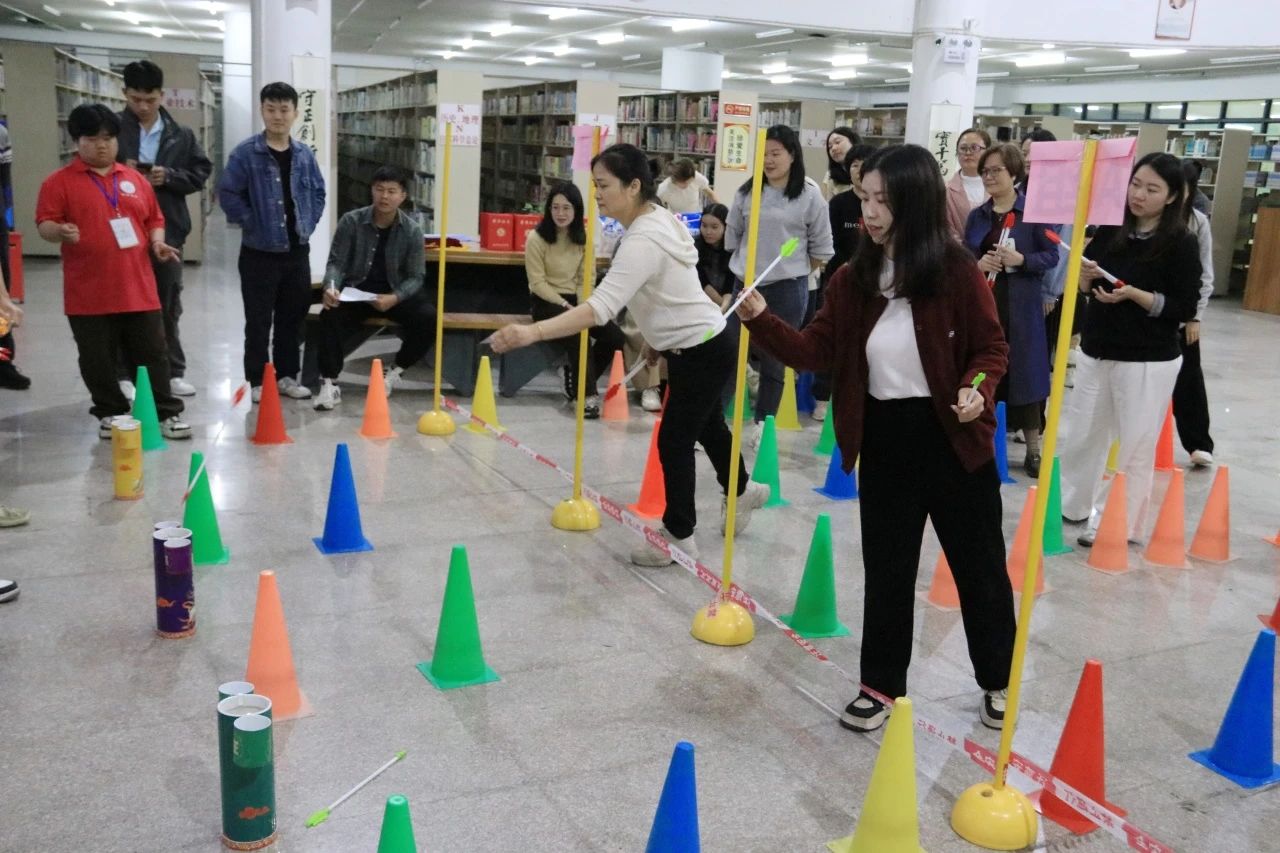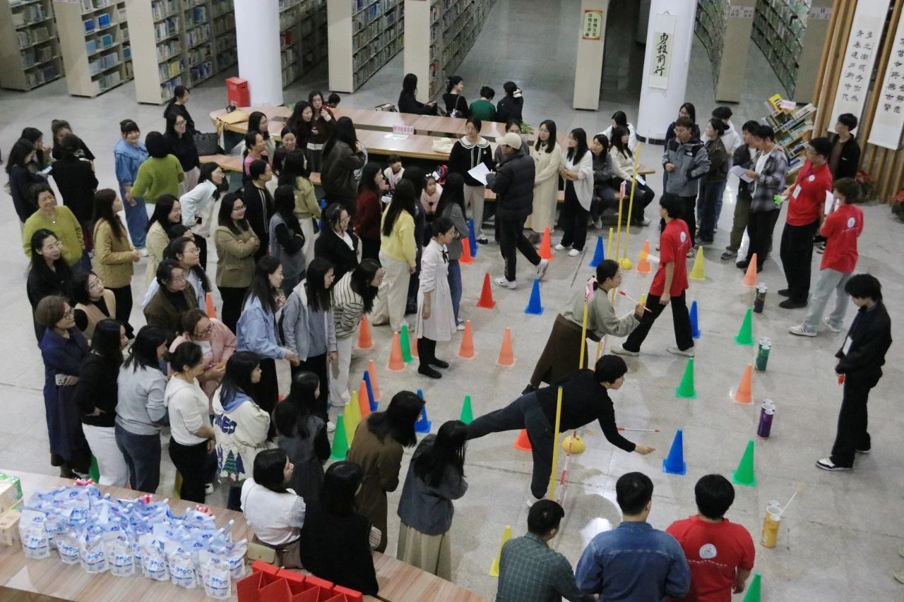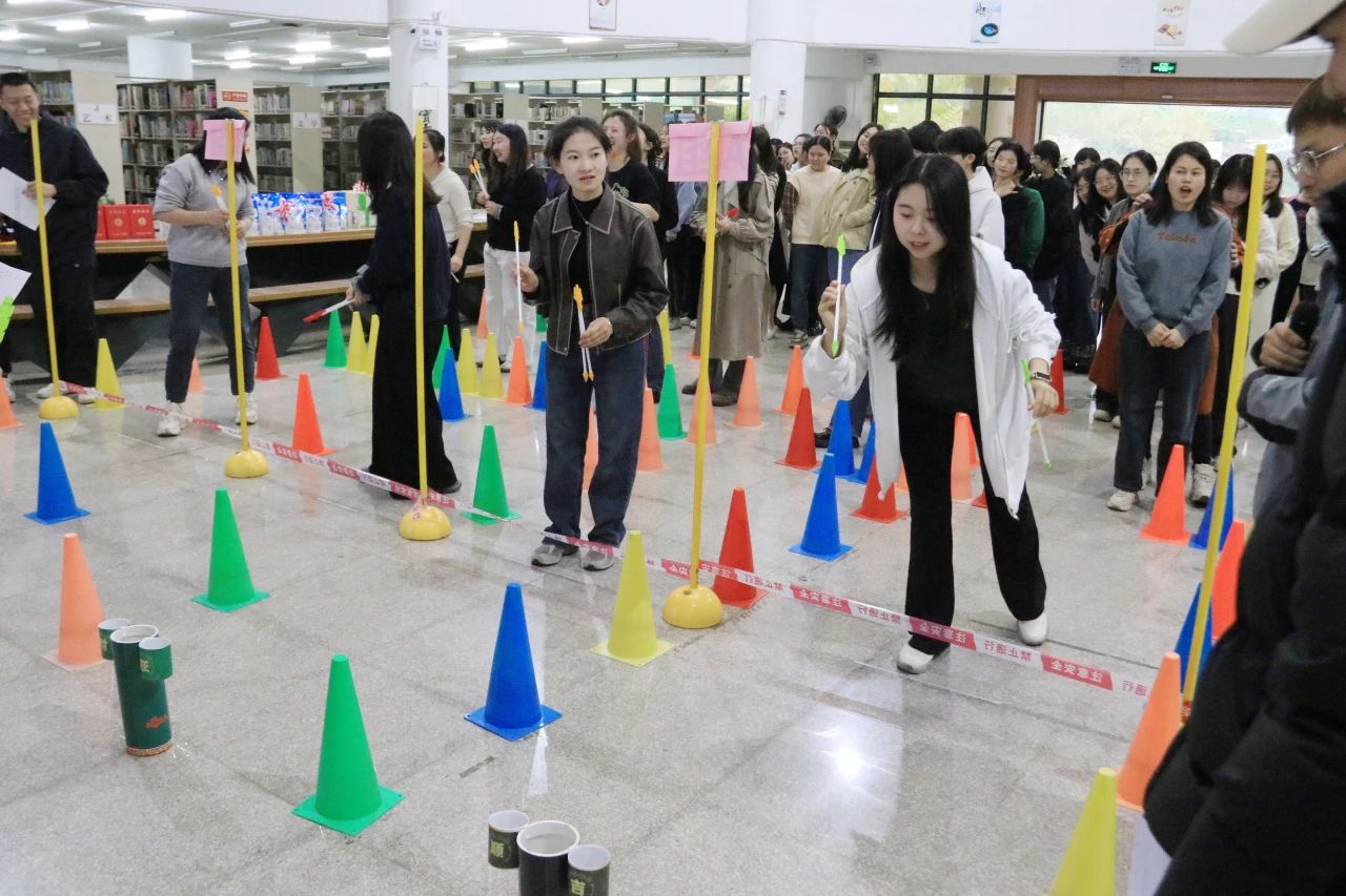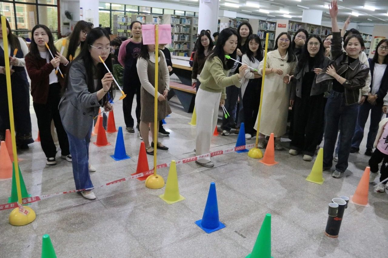 活动当日,天气虽细雨绵绵,图书馆内仍充满了欢声笑语。女教职工们暂时放下工作的忙碌,以轻松愉悦的心情迎接这场特别的运动会。投壶作为中国古代传统的礼仪和宴饮游戏,兼具趣味性与技巧性,深受大家喜爱。