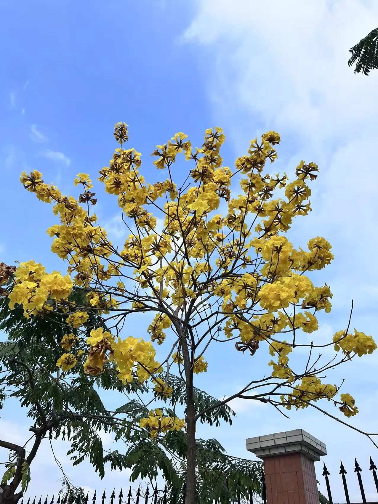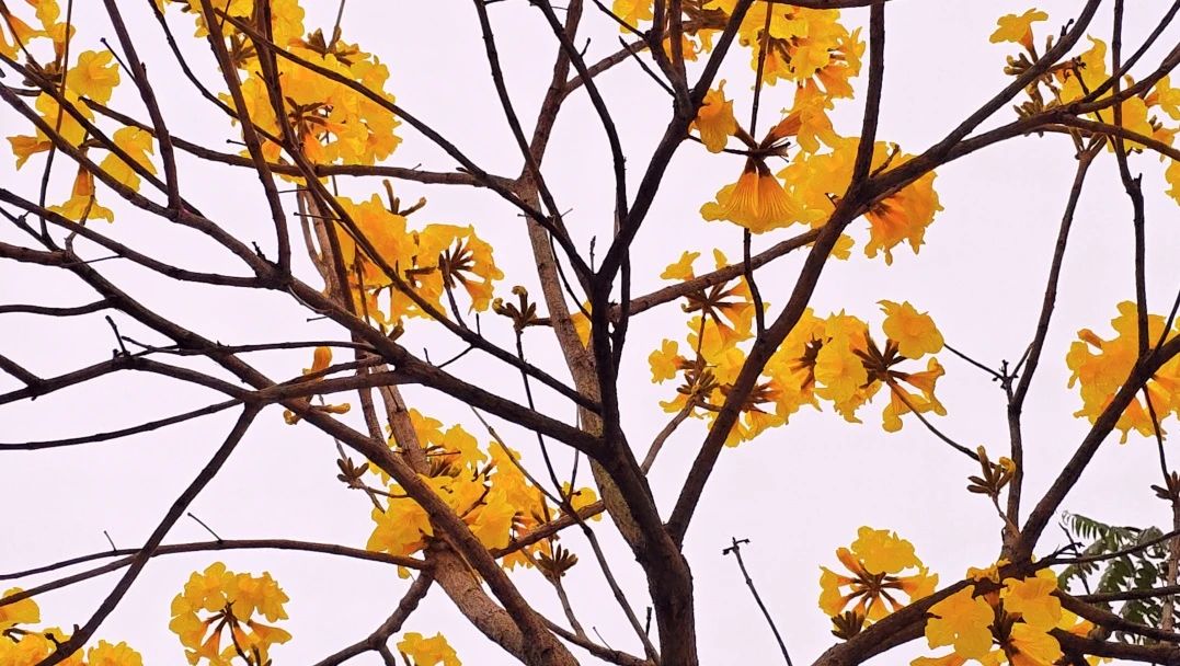 满树金黄倾泻而下 每一簇花朵
