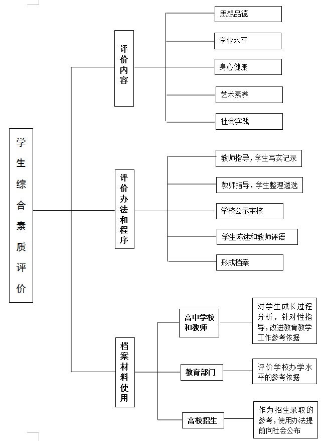 一是评价内容上要求可考察、可比较、可分析。综评强调如实记录学生成长过程中的主要经历和典型事例,突出客观记录和写实性描述,真实反映学生的发展状况,做到有据可查。同时注重过程性,以过程的形式反映学生高中三年的成长历程,尤其是个性特色的发展历程,将部分原本难以考察的主观性指标,转化为参与相关活动情况记录及成果,来体现学生的综合素质状况,使评价内容可考察、可比较、可分析。