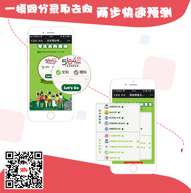 5184高考APP上线“一模同分去向查询”系统,只需两步帮你快速预测未来的大学。